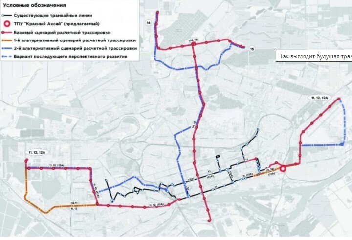 Таким образом, по версии архитектора, в городе можно создать двухконтурную трамвайную сеть. Новые линии современного скоростного трамвая будут проложены по обособленному полотну. А модернизированный старый трамвай будет перемещаться по совмещенному.