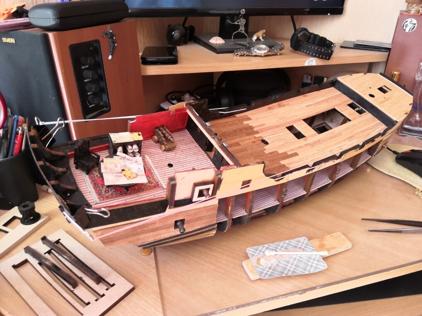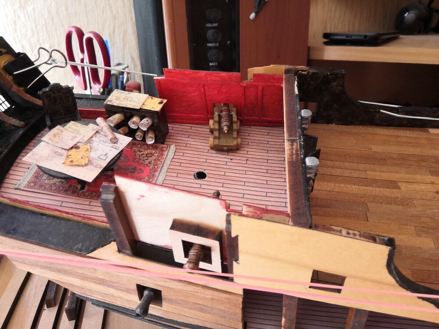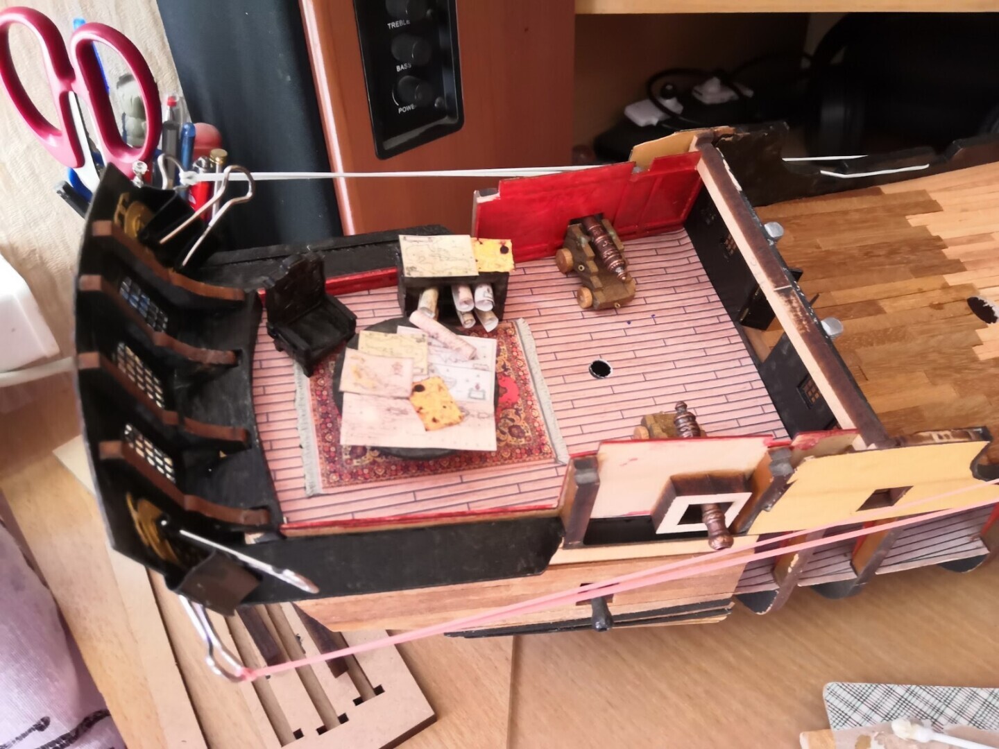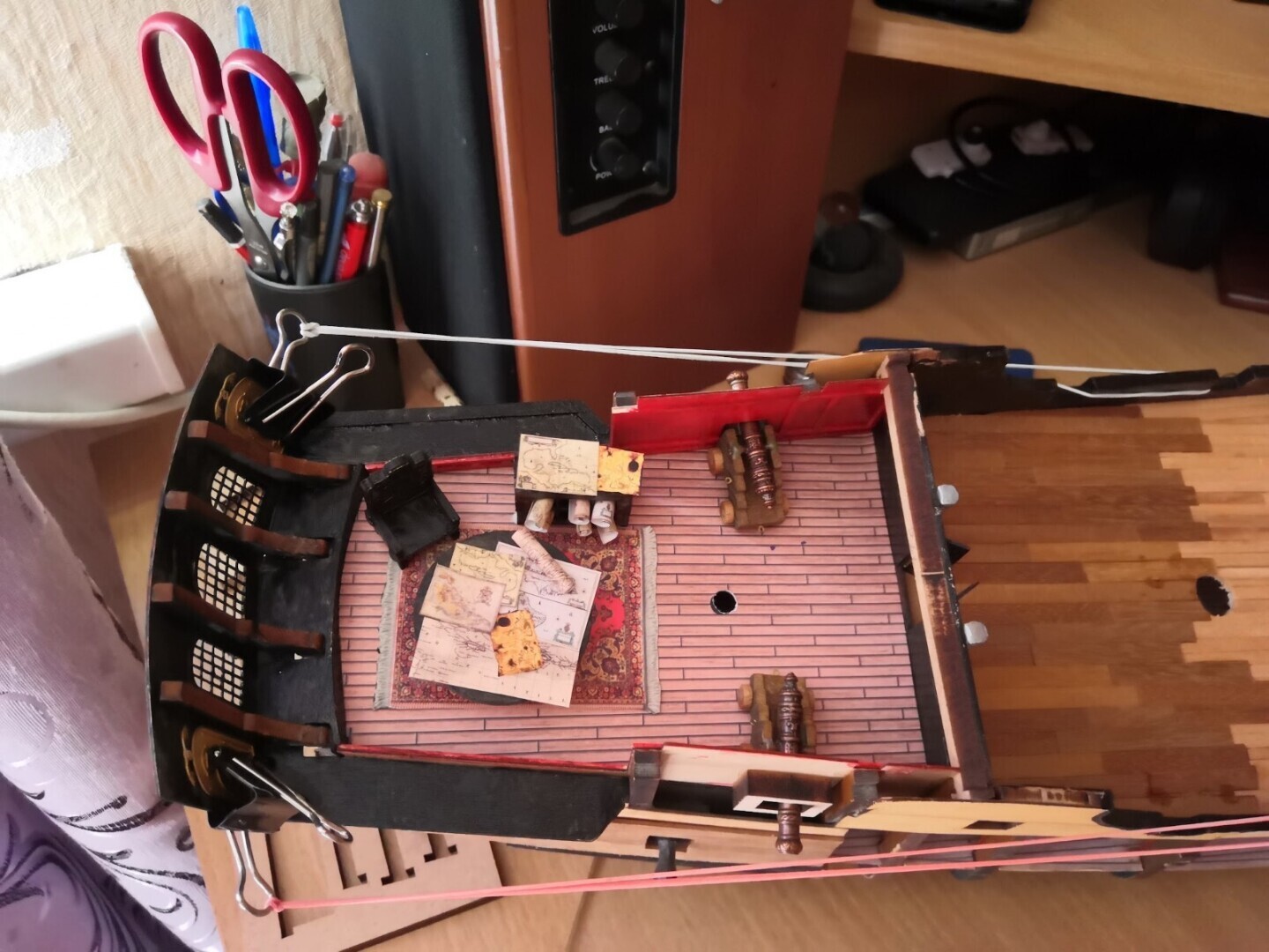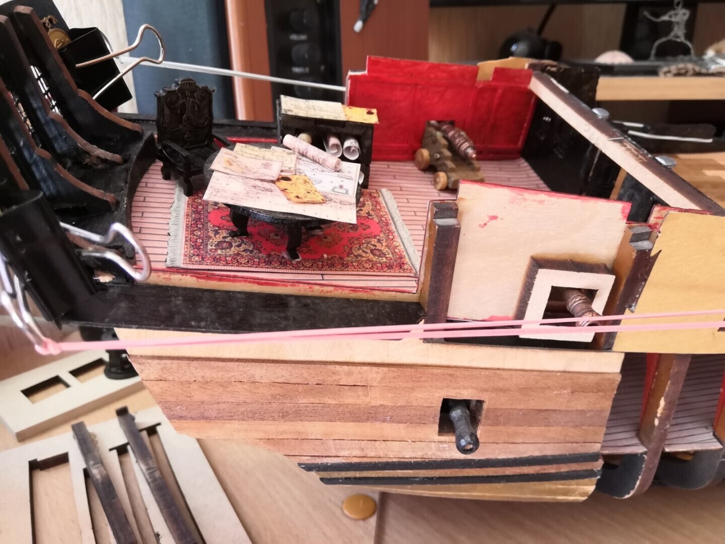 Интерьер каюты Капитана Джека Воробья, Любимое кресло Воробья и конечно же навигационные карты на столе. Как известно Капитан Воробей отличный картограф