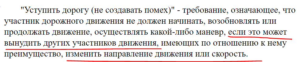 В частности, Верховный суд обратил внимание на разъяснение понятия "уступить" дорогу, которое даётся в ПДД, статья 1.2 часть 1 ПДД "Общие положения":