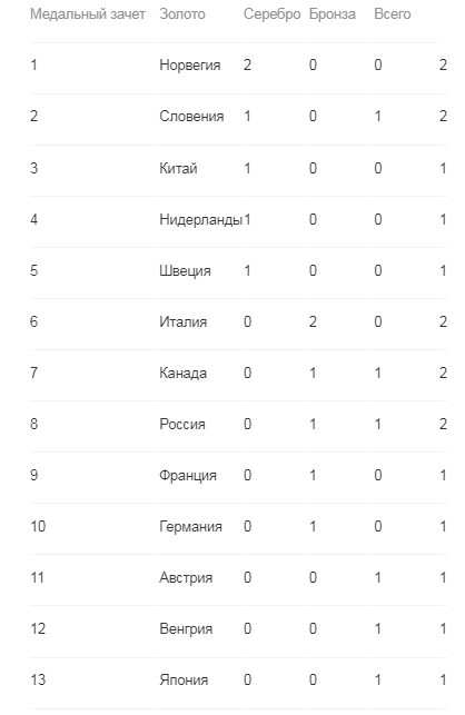 Таблица медального зачета Олимпиады в Пекине на сегодня, 06.02.2022