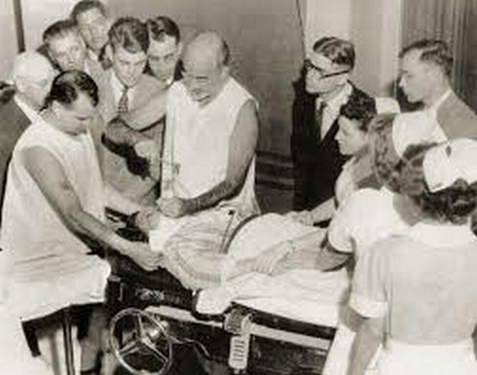 Одним из примеров буржуазной медицины является пользующийся широким распространением в американской психиатрии «новый метод лечения» психических заболеваний — лоботомия (лейкотомия)… Естественно, что в среде наших врачей, воспитанных в духе славных традиций великих гуманистов — Боткина, Пирогова, Корсакова, вооружённых учением И. П. Павлова, не может быть места таким «методам лечения», как лоботомия.