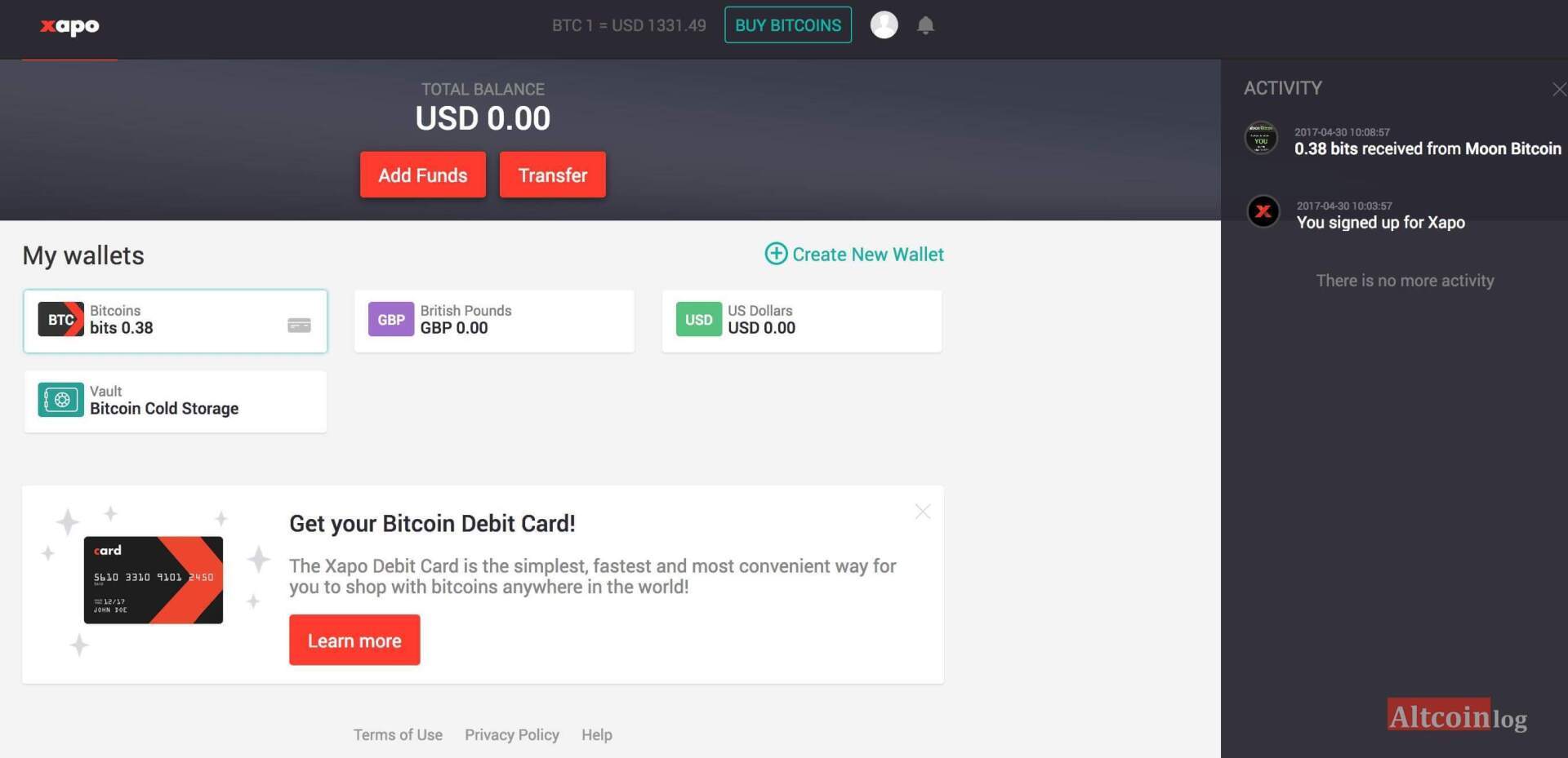 С Xapo пользователи могут оплачивать покупки биткоинами, используя дебетовую карту сервиса во многих странах мира (не распространяется на территорию СНГ). Ресурс предлагает для скачивания мобильные версии кошелька для iOS и Android. Пополнить счет кошелька Xapo можно банковским переводом. Фиатные деньги автоматически переводятся в BTC по биржевому курсу.