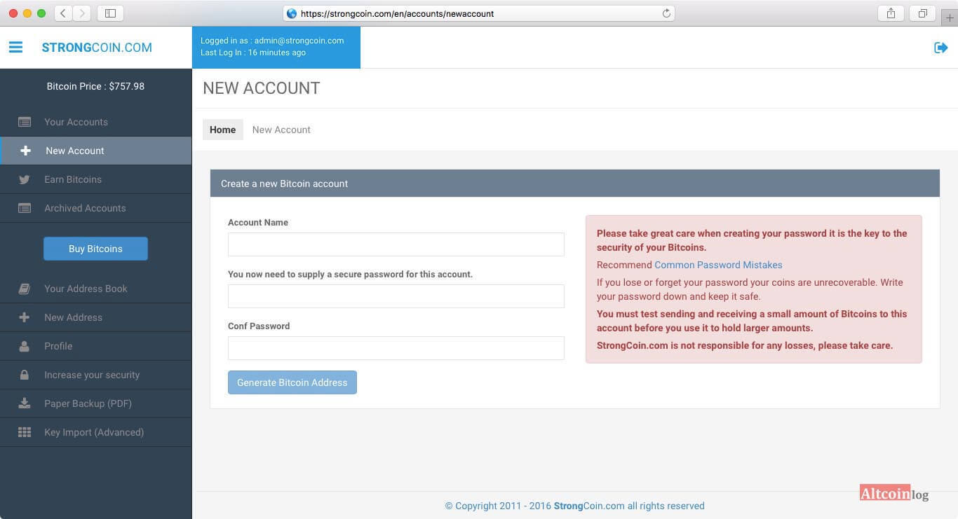 StrongCoin — это гибрид биткоин-кошелька. Гибридный кошелек позволяет отправлять и получать биткоины, как и любой другой кошелек. Однако закрытый ключ, необходимый для отправки денег, зашифрован в вашем браузере до того, как он будет сохранен на сервере. Все пункты вашей учетной записи доступны для скачивания в виде документа PDF. Он содержит копию всех ваших закрытых ключей AES Bitcoin, зашифрованных паролем, который вы использовали при создании учетной записи. Распечатайте, сохраните в безопасном месте и спите спокойно, зная, что распечатка всех ваших криптовалютных средств в зашифрованном виде и под вашим контролем. Не забудьте только удалить из памяти принтера историю последних распечаток.
