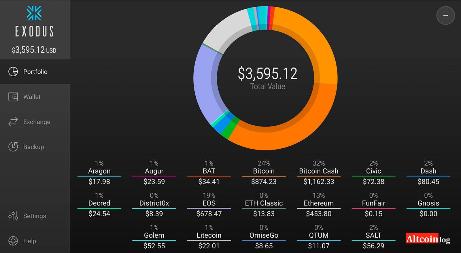 -Exodus, универсальный кошелек для криптовалют, по праву считается одним из лучших в 2020 году. Он поддерживает больше 100 альткоинов, имеет встроенный сервис обмена и удобный графический интерфейс. Приватные ключи хранятся непосредственно у пользователя, в случае сбоя операционной системы программу можно легко восстановить. Кроме того, выпущена мобильная версия приложения, и в случае необходимости Exodus может взаимодействовать с Trezor Hardware Wallet.