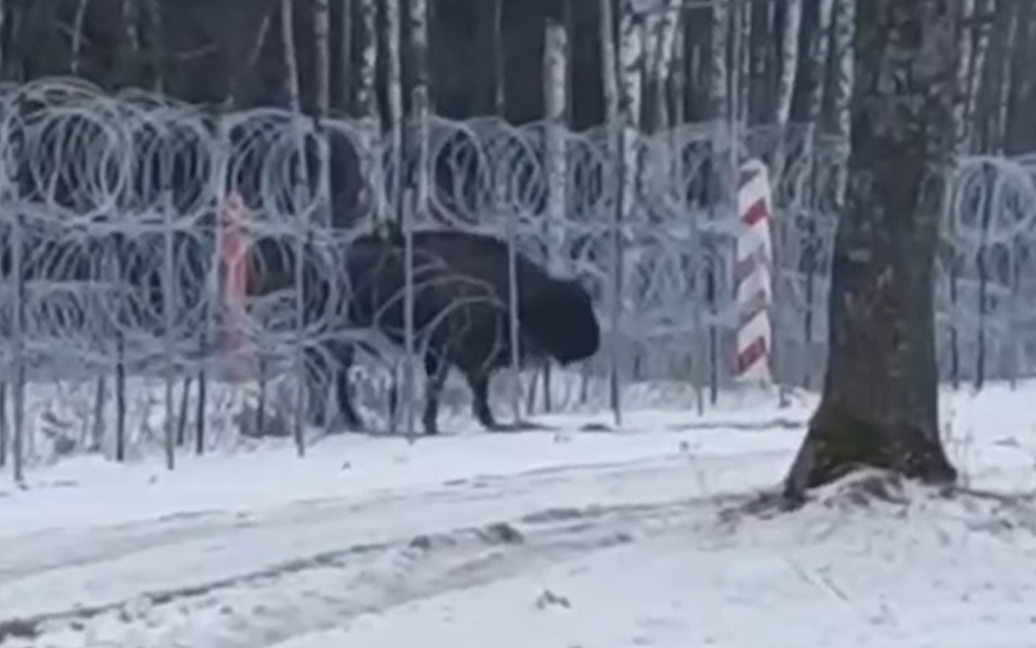 Зубриха "Манька" прошла через ограждение на границе, чтобы попасть из Беларуси в Польшу