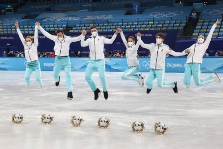 В 6:30 утра по московскому времени досрочно, еще до произвольной программы у женщин, отечественная сборная выиграла командный турнир в Пекине и вернула титул после второго места в этом виде программы на белых Играх в Корее. Именно из-за того второго места удивительно талантливая и титулованная Евгения Медведева так и не стала олимпийской чемпионкой. Медведева тогда в яркой борьбе уступила первое место среди одиночниц Алине Загитовой. А в команде неожиданно пропустили на верхнюю ступень пьедестал канадцев.