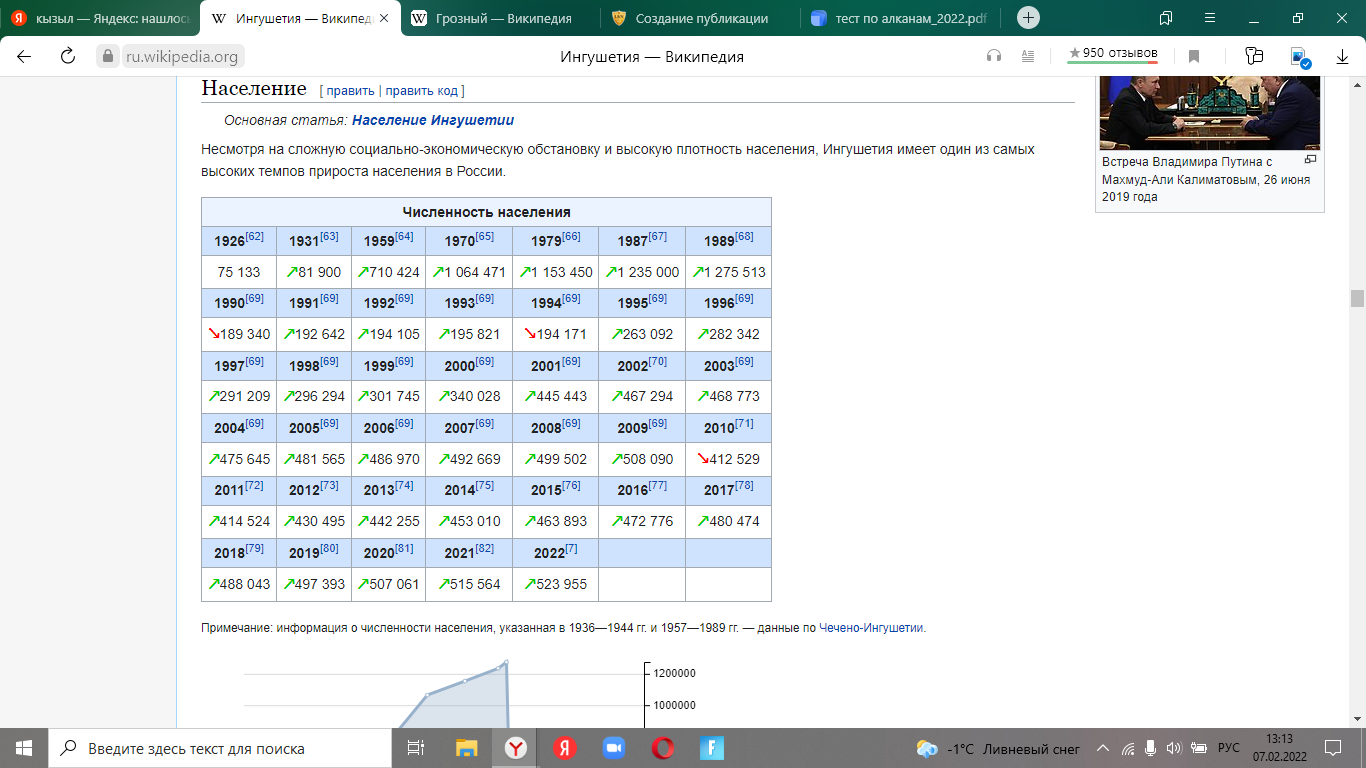 Как мы видим, население растет. А ведь в Грозном много русских. Это значит, что в горных аулах, там где живут преимущественно чеченцы и лезгины, численность населения растёт с еще большей силой.