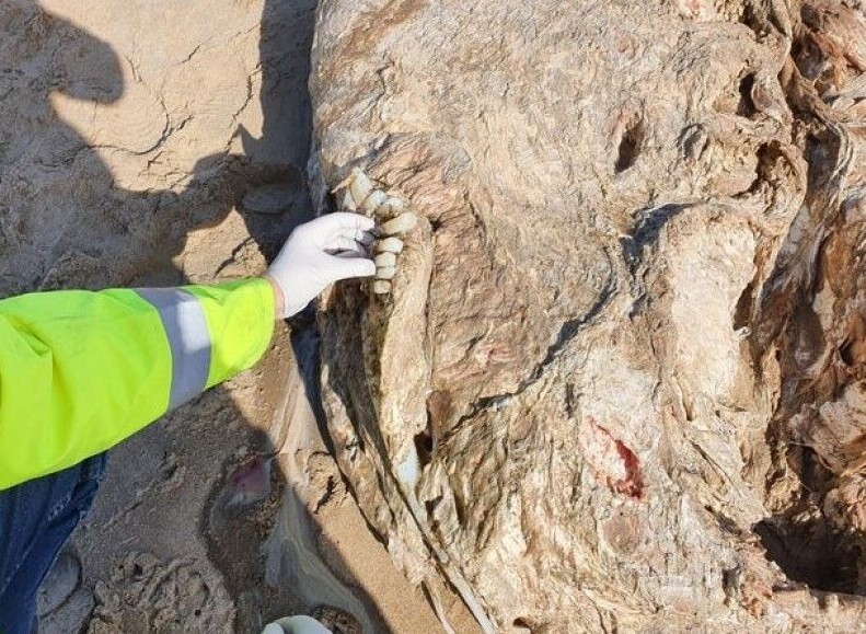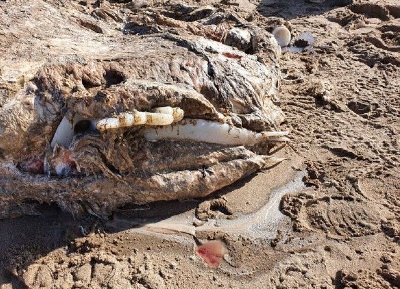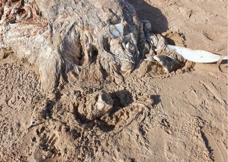 Пока эксперты изучают останки, появились предположения, что выброшенное на берег существо – гигантская акула.