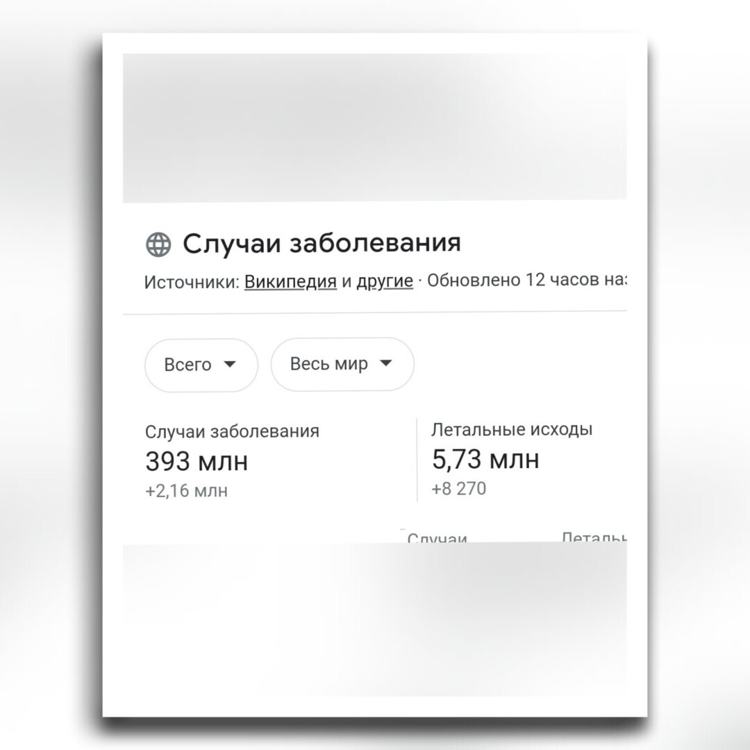 Так, да не так. Каждый новый день, приносит тысячи заболевших в графу статистики. И если вы думаете, что живя в селе Тутуевка, он до вас не доберётся, то вы ошибаетесь. При этом данную статистику ещё считают заниженной по сравнению с той, которая есть на самом деле. К примеру я знаю много людей, которые болеют дома, покупают тесты сами и не идут в больницу. Как раз таки, это и есть то количество, которое остаётся "за кадром". Поэтому, если ты думаешь что ковида нет, то пора начать верить, что мы не жители земли ✅