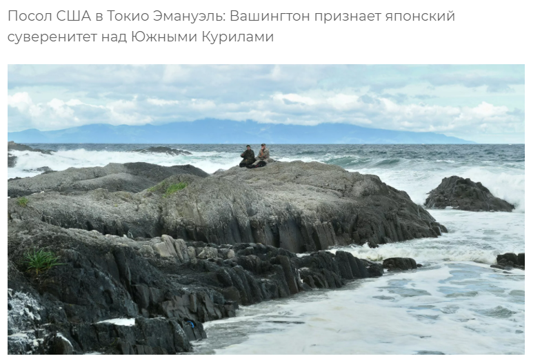 "Сегодня, 7 февраля, когда в Японии отмечается день северных территорий (как японцы называют южные острова Курильской гряды – ред.), хочу вновь прояснить: США поддерживают позицию Японии по вопросу северных территорий и признают японский суверенитет над четырьмя спорными островами с 1950-х годов. Наши волнения относительно действий России не новы. К сожалению, тот факт, что Россия пренебрегает суверенитетом других стран, тоже не нов", - заявил дипломат в видеопослании, размещенном на Twitter.