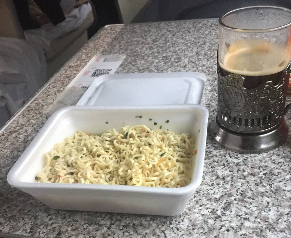 Да-да, именно питание в поезде стоит на первом месте. Ведь единицы, кто питается "бпшками" ("дошиками") изодня в день. Причем запивая сухую лапшу кофе со сливками и сахаром. Как вам? Ведь вкуснятина, не так ли? :) Ну, более адекватные (я не в их числе) запивают черным или зеленым чаем.