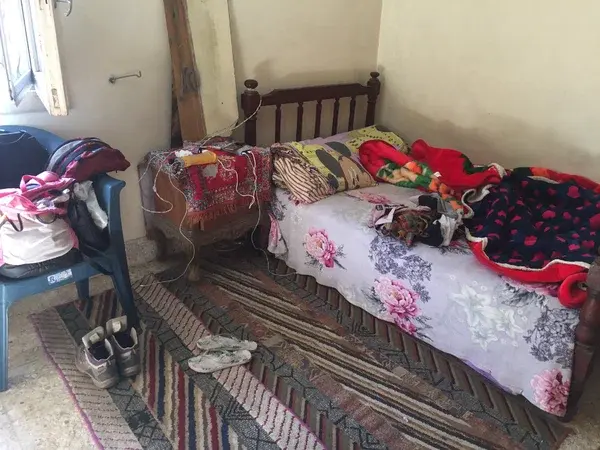 Место для сна выглядит так: ковёр, большой странный встроенный шкаф, ставни на окнах, то есть утром в комнате будет темно, что тоже я просто ненавижу. Разуваться не надо, продолжаем расхаживать по дому в уличной обуви. Постель без постельного белья, просто одеяла, просто подушка. Кто спал до этого - пойди разберись. Вот примерно так выглядит простая холостяцкая квартира в Египте. Хочу отметить, что он ещё неплохо живёт. Довольно чисто, несмотря на то, что тут он постоянно ходит в обуви.