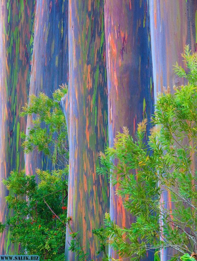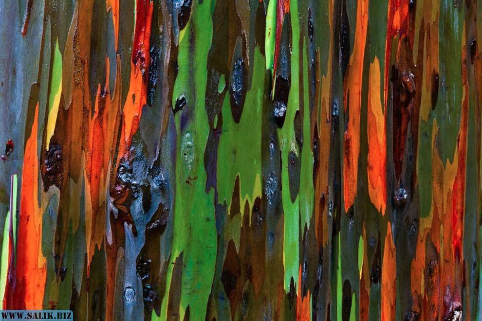 Радужный эвкалипт (Rainbow Eucalyptus) — это одно из самых необычных деревьев, которое только можно себе представить. Его необычность заключается в цветной, будто раскрашенной художником, коре, которая сменяя слои так же меняет и свой цвет.