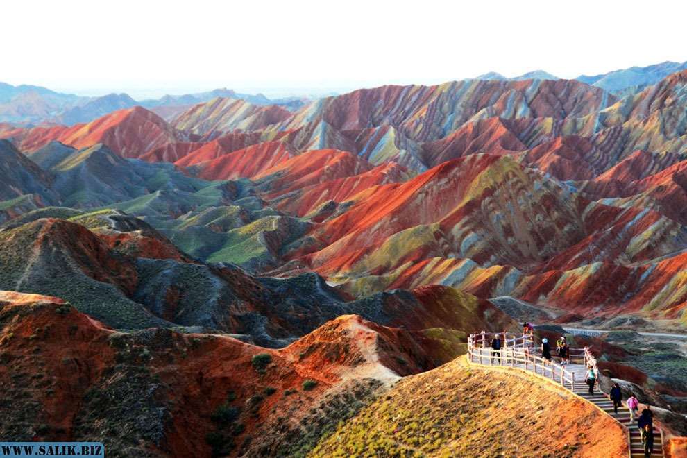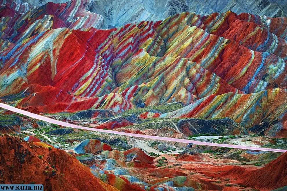 Красно-оранжево-розовые горы в китайской провинции Ганьсу, рядом с городом Чжанъе, будто бы покрыла радуга.