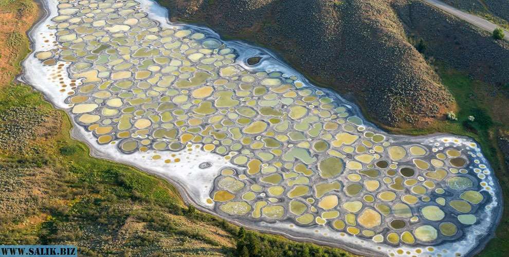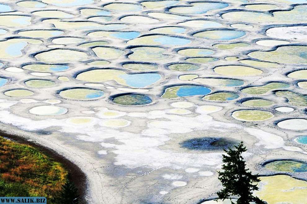 Пожалуй, одним из самых странных мест на Земле можно назвать находящиеся близ города Осуюс в Канаде озеро Клилук, или Пятнистое озеро. Летом, когда жара достигает своего пика, большая часть воды в озере испаряется, а оставшиеся минеральные вещества затвердевают и образуют «дорожки» между озерцами. Сами пятна из мелких озер окрашиваются в разные цвета, в зависимости от погодных условий.