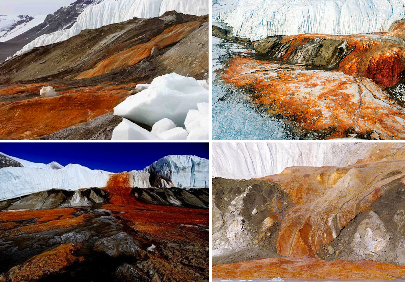 К тому же озеро населено микроорганизмами, которые из-за полного отсутствия солнечного света и питательных веществ приспособились брать энергию, перерабатывая сульфат в сульфит, который они окисляют с помощью железа со дна озера. Выходя на поверхность, вода из подводного озера начинает взаимодействовать с кислородом, происходит реакция, которая и придает воде кровавый буро-красный цвет.