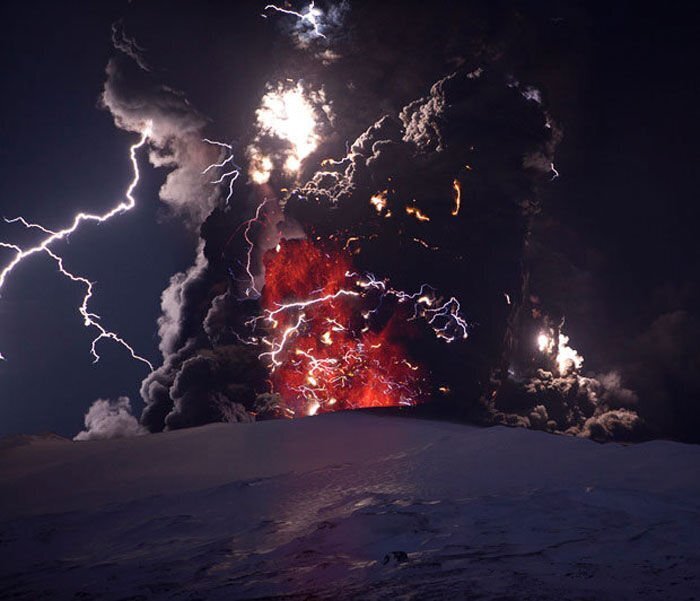 Грязная гроза или «вулканическая молния» представляет собой погодное явление, которое происходит, когда молния образуется в вулканическом факеле — облаке пепла, которое поднимается из жерла вулкана во время извержения.
