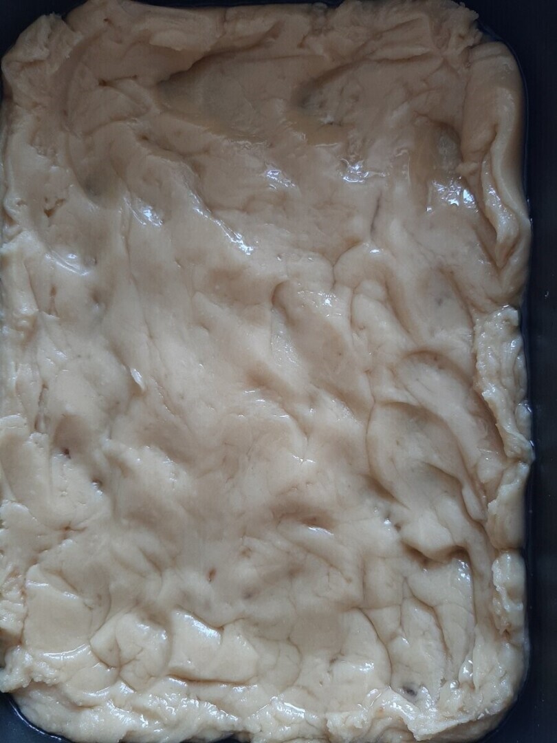 8) На тесте распределяем лимонно-сахарную смесь (если даже она покажется жидкой, не бойтесь: в процессе выпекания превратится в жилейную массу и вытекать из пирога не будет).