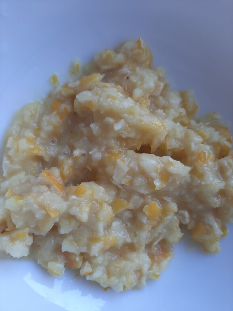 6) Измельчаем лимоны вместе с цедрой, добавляем примерно полстакана сахара (я вот вообще не добавила, забыла)) получилась начинка с кислинкой:))