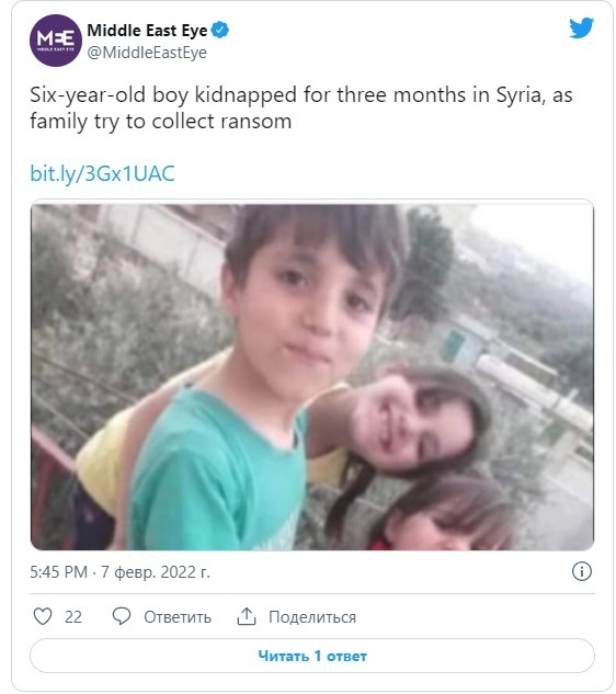 Деръа, 7 февраля. Сирийская семья из административного центра провинции Деръа четвертый месяц собирает деньги для выкупа своего шестилетнего ребенка у похитителей.
