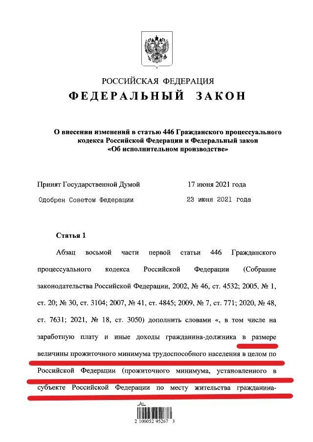 Речь в таких новостях идет о том, что с 1 февраля 2022 года в России вступили в силу поправки к законодательству, согласно которым запретили списывать в счет погашения долгов по решениям суда и судебным приказам средства в размере прожиточного минимума.