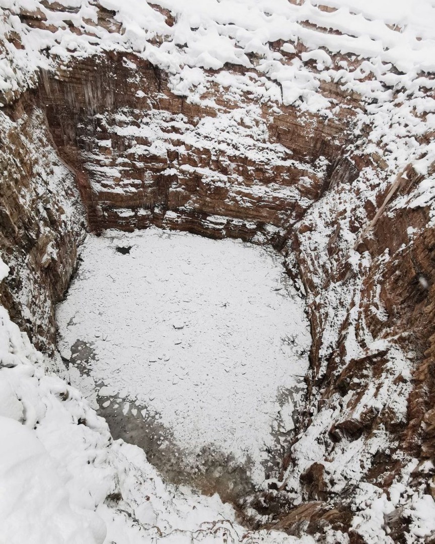 Альпинисты спустились на дно озера и обследовали стенки котлована. Они обнаружили, что вода уходила постепенно, стенки были сухие. Лед какое-то время находился в подвешенном состоянии. А потом просто рухнул в пустоту.