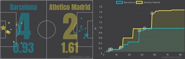 Показатели xG также могут ввести в заблуждение тех, кто не видел игру. Атлетико вырвался вперед по показателям ожидаемых голов уже после основных событий матча.