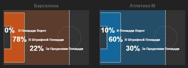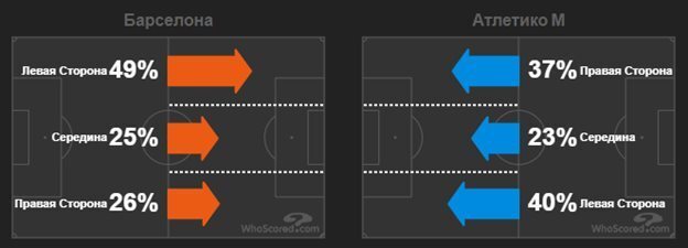 Через эту вертикальную зону прошло 49% атакующих действий команды Хави. Согласно статистике, на правом фланге активности было в два раза меньше.