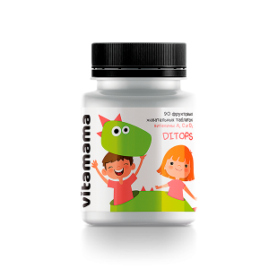 ❷ Фруктовые жевательные таблетки с витаминами A, C и D Ditops - Три главных витамина – А, С и D – для роста и иммунитета в виде фруктовых таблеток с полезной палатинозой вместо сахара. Микс двух любимых вкусов! Без вреда для зубов.