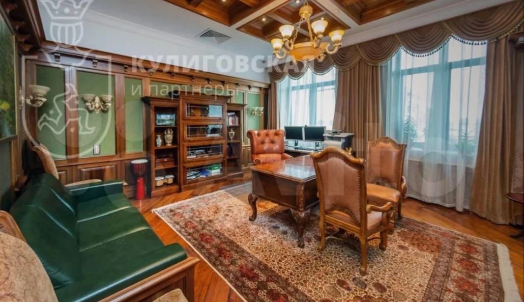 Интерьер пентхауса выдержан в классическом английском стиле. В доме есть подземный паркинг и охрана. Само жилище оборудовано по последнему слову техники — там есть сигнализация, датчики движения, видеонаблюдение в комнатах, единый встроенный пылесос.