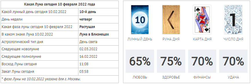 Гороскоп на 10 февраля 2022 года для всех знаков Зодиака. Фаза Луны, Руна, Число и Карта дня