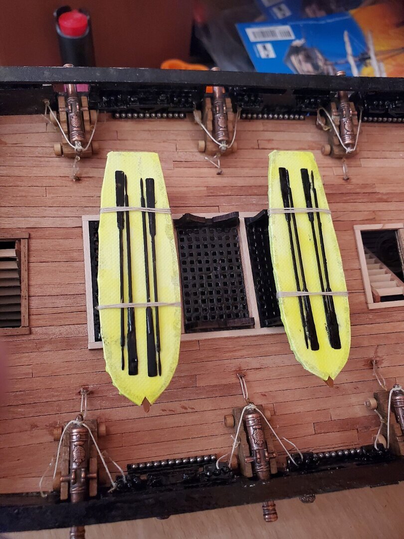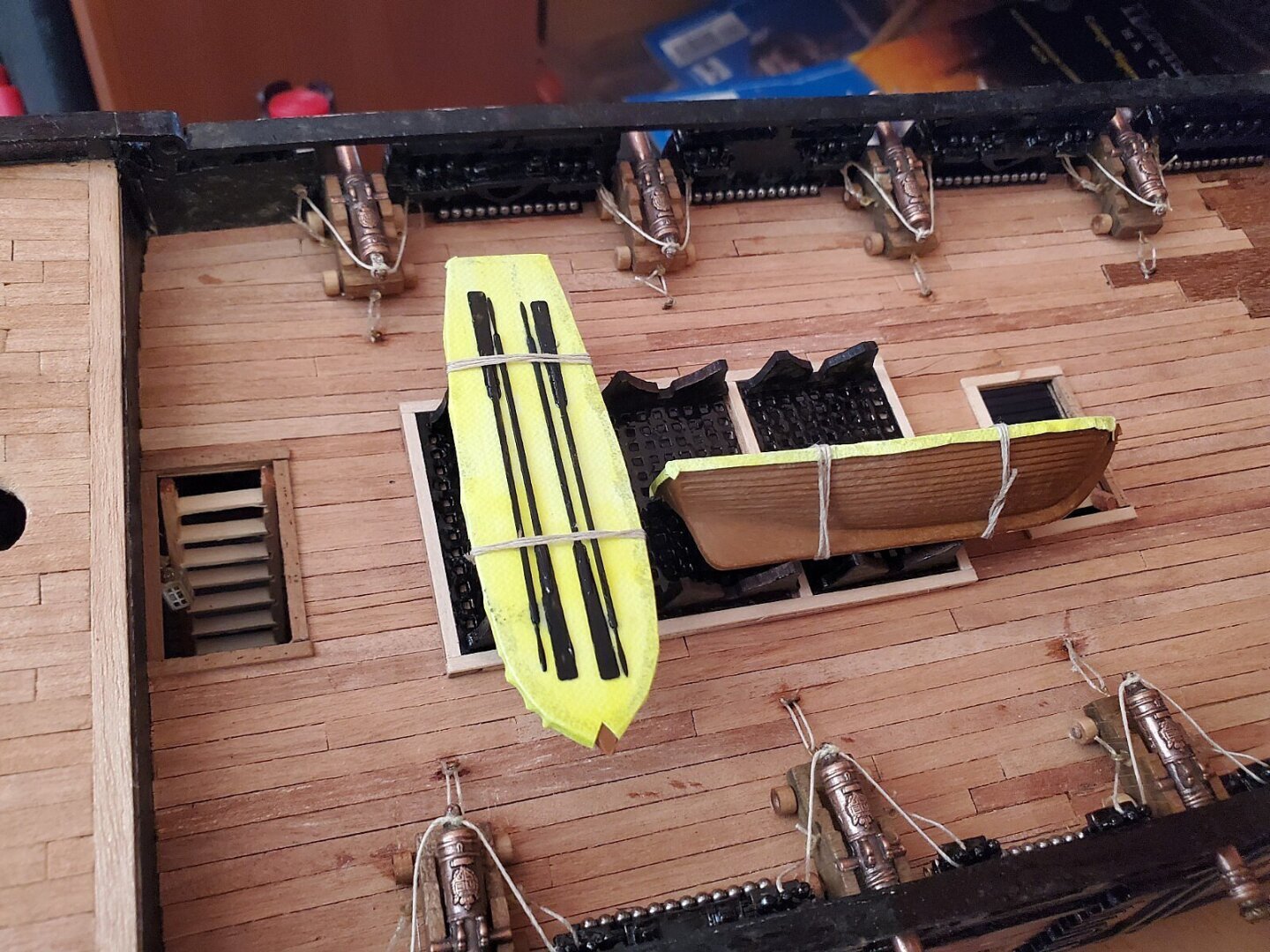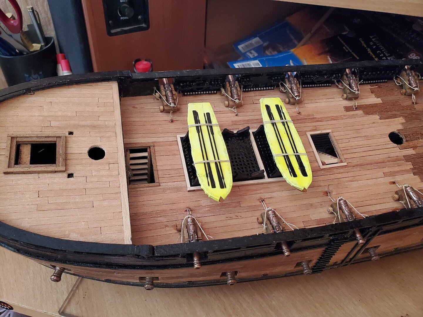 Установив ядра на верхней палубе я начал подготавливать подставки для шлюпок на верхней палубе.