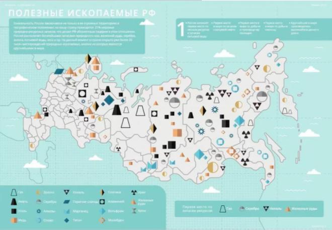Естественно, что приведенные цифры не отражают все показатели по полезным ископаемым в Российской Федерации. Это только некоторые цифры, изучая которые становится понятно, что на территории страны расположены богатые источники полезных ресурсов. Но, в связи с разработкой месторождений на шельфе, в северных частях страны, вероятно, что эти числа будут увеличены. Но, с другой стороны, не стоит упускать из внимания исчерпываемость полезных ископаемых.
