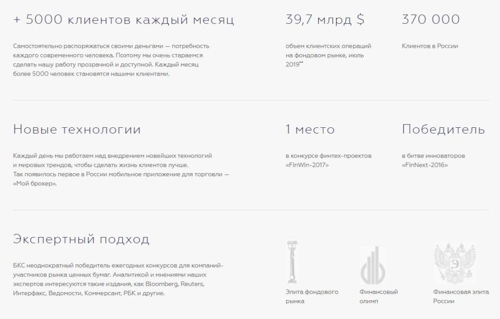 БКС – один из старейших российских брокеров, появившийся еще в 1995 году в Новосибирске (в 2000 году сменил «прописку» на Москву). Именно БКС занимает красивый домен broker.ru, этим самым подчеркивая свой особый статус. Для своих клиентов БКС Брокер предлагает множество услуг по приобретению активов и управлению ими.