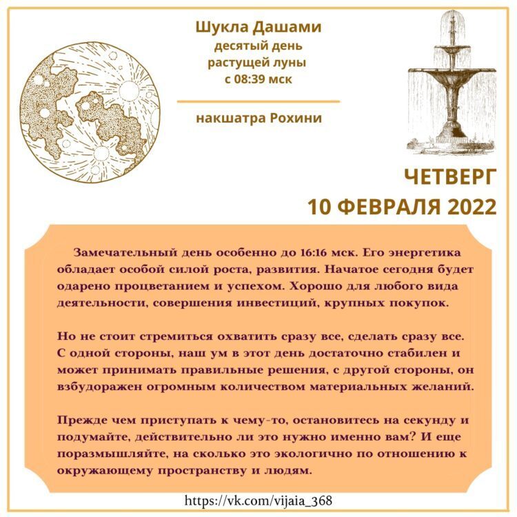Все его существо стремится к получению новых знаний, поэтому работа с информацией будет полезна. Можно изучить или составить свое родословное древо. Вообще десятый лунный день благоприятен для любых начинаний. Претворяйте в жизнь все, что вы откладывали когда-то, но не перегружайте свой организм. Любое переутомление опасно.