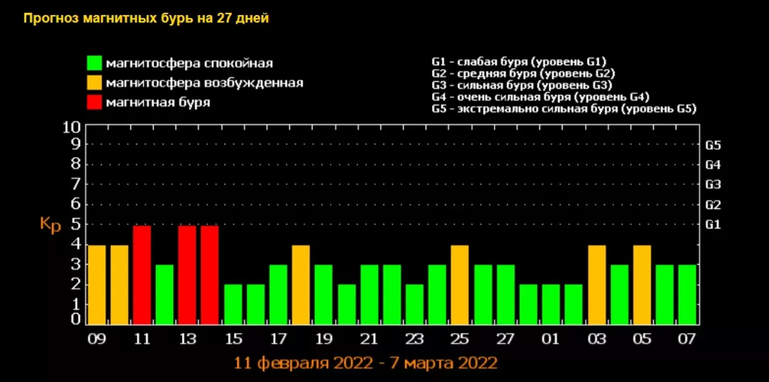 серьезные магнитные бури: 9, 10, 11, 13, 14, 18 и 25 февраля.