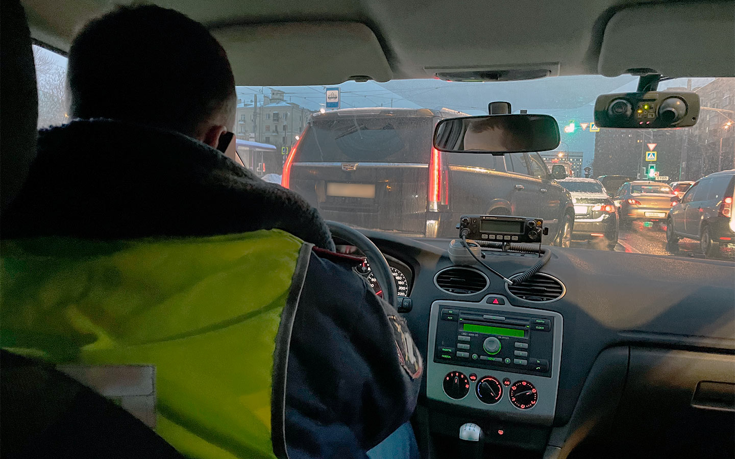 «Желтое такси объезжает трамвай по встречке! За ним серебристый Hyundai! Повторяю, серебристый Hyundai Getz, брать обоих!». В белоснежном Ford Focus без полицейской спецокраски мы мчимся центральному округу Москвы. Паре водителей только что надоело ждать, пока трамвай высадит пассажиров, и они решили объехать препятствие по встречной полосе. Камер вокруг нет и кажется, что такой