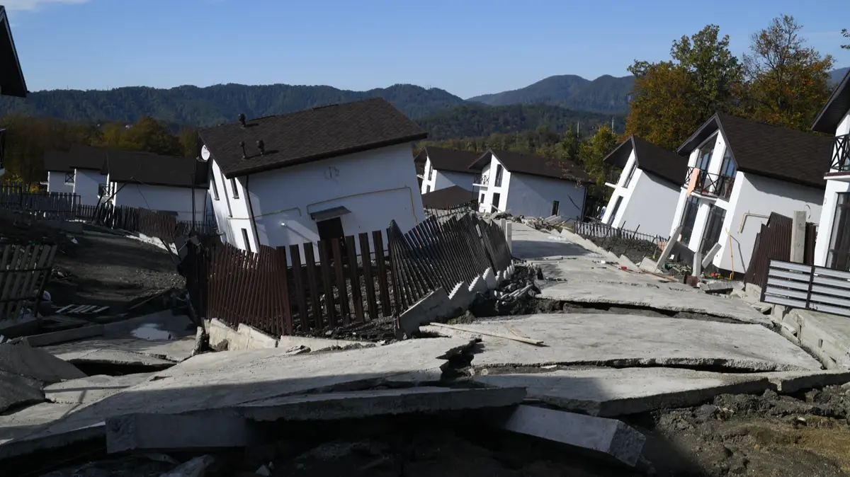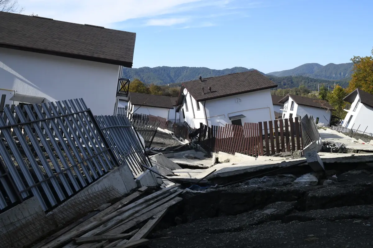 Коттеджный эко-поселок «Горная поляна» после оползня. Фото: Светлана Виданова / «Новая газета»