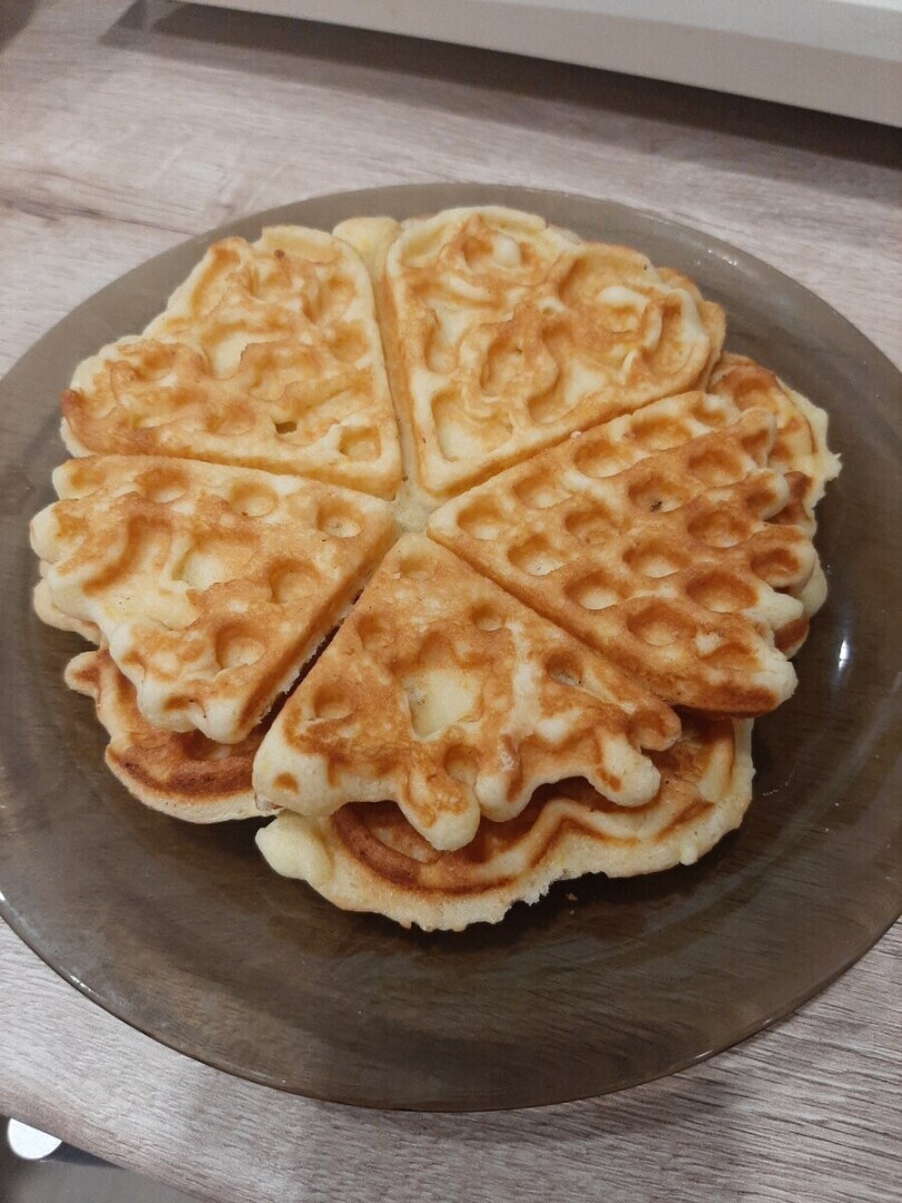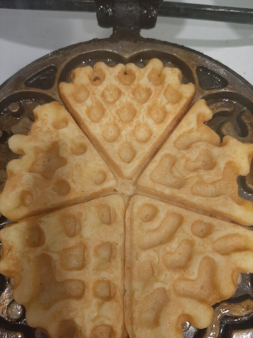 Тогда по центру выкладываем горкой нужное нам количество теста и сразу закрываем вторую половину. Тесто само равномерно распределится по всей форме. С каждой стороны печем печенье по 15-20 секунд, не больше.