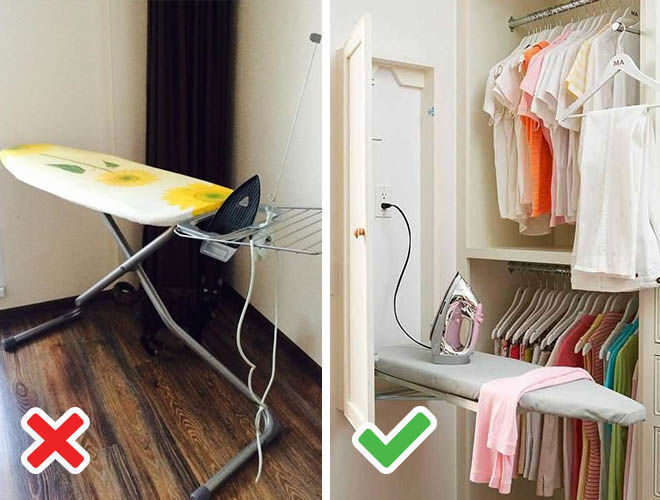Что касается сушилки: развесьте сушить белье перед тем, как отправляться на работу. А вечером снимите сухие вещи и уберите сушилку в шкаф. Так никто и не догадается о ее существовании!