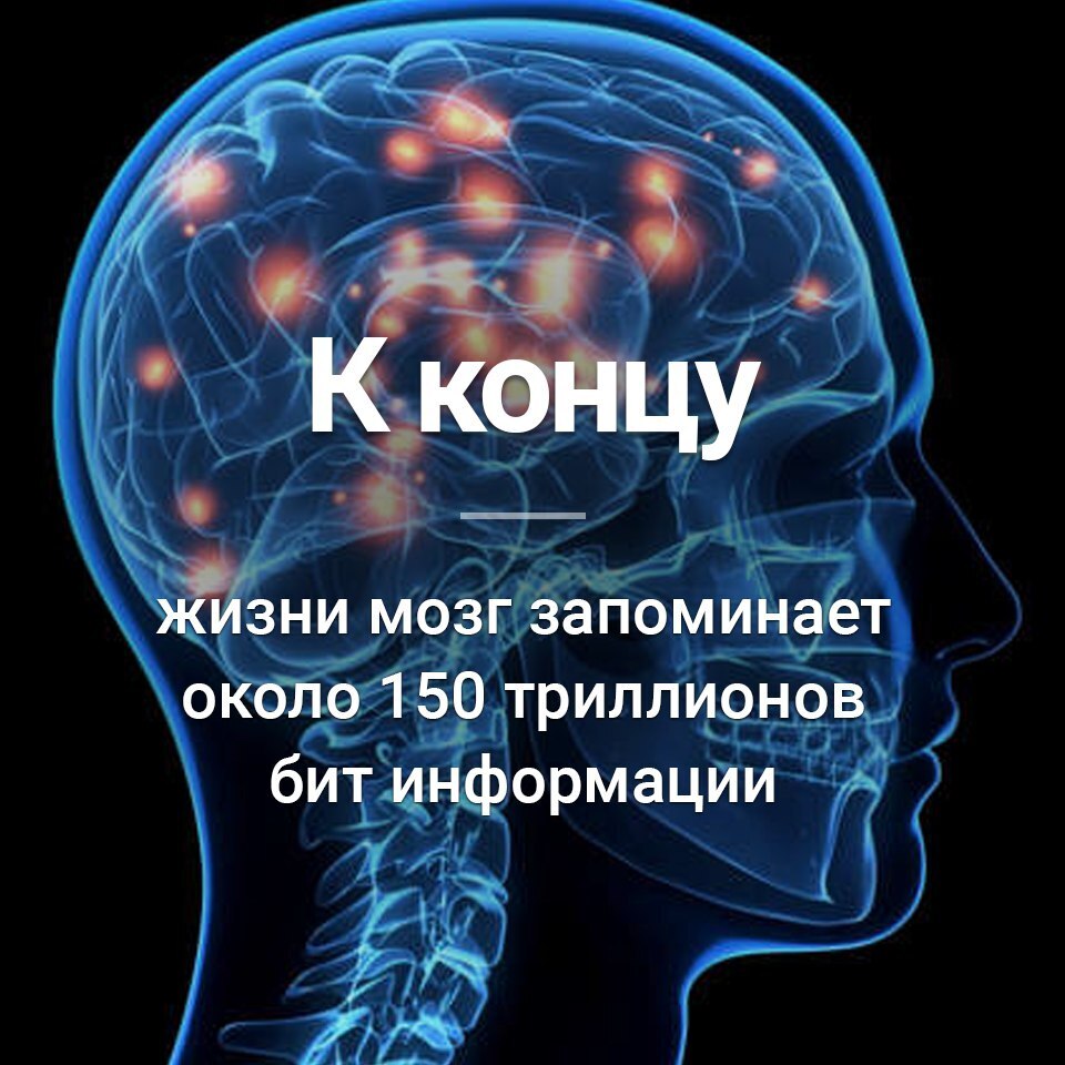 10) К концу своей жизни средний человек может вспомнить до 150 триллионов единиц информации.