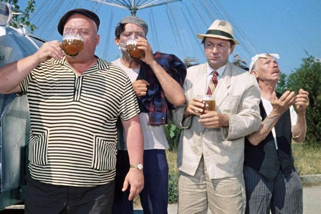 Поэтому для съемок эпизода с пивом он потребовал налить ему просто настойку шиповника. Но Гайдай рассудил иначе. Мэтр резонно заметил, что такая настойка в кружке не пенится и уговорил-таки актера в кадре выпить настоящий напиток. Сцену сняли с одного дубля.
