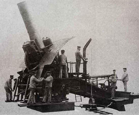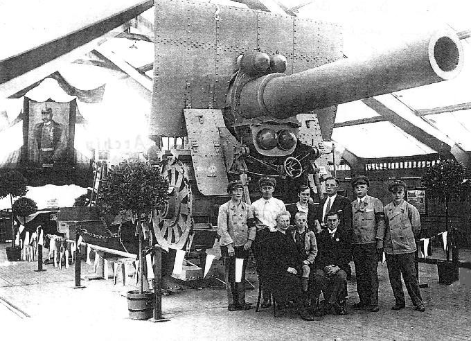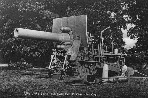 Мортира "Большая Берта" Разработана в 1904 году, и построена на заводах Круппа в 1914 г. Основными создателями нового орудия, были главный конструктор крупнейшего немецкого концерна «Крупп» профессор Фриц Раушенбергер и его предшественник на посту Дрегер. Скорострельность «Берты» составляла 1 выстрел в 8 минут. Прицельная стрельба могла вестись на дистанциях до 12,5 км, дальность полёта снаряда превышала 14 км. «Большая Берта» могла вести огонь боеприпасами трёх видов: бетонобойными снарядами, обладавшими способностью разрушать 8-метровые бетонные стены, не армированные металлопрокатом;