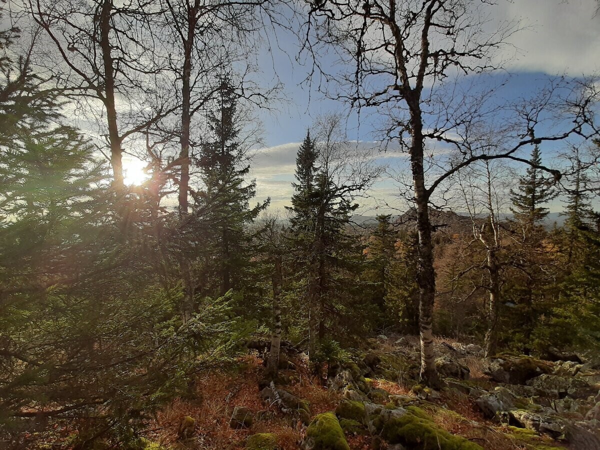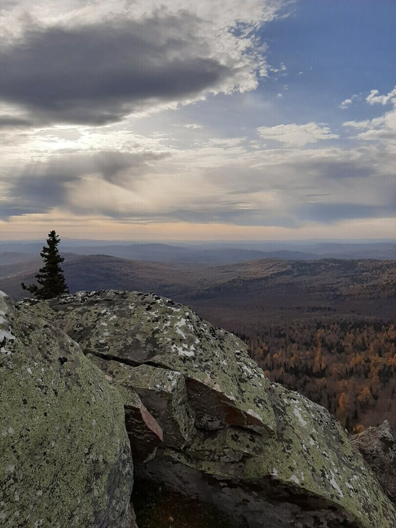 Мы карабкались по огромным каменным валунам. Честно признаться, я уже устала на полпути, казалось, силы покидали меня... И вот мы на вершине. Это непередаваемое ощущение! Все проблемы с высоты птичьего полета кажутся настолько мелкими, что они просто стираются из памяти, все остается внизу. Вокруг тебя только красочный, яркий осенний пейзаж. Спокойствие и свобода... Мы провели на вершине около часа, время шло незаметно. Мы наслаждались открывающимися перед нами видами, багровым закатом... Каждый думал о своем.. Мечтал, делился впечатлениями...