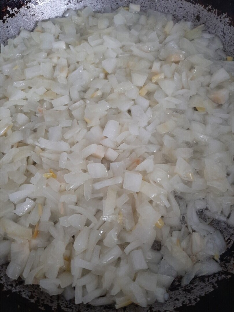 Пожарим мелко нарезанный лук минуты 3-4, помешивая.