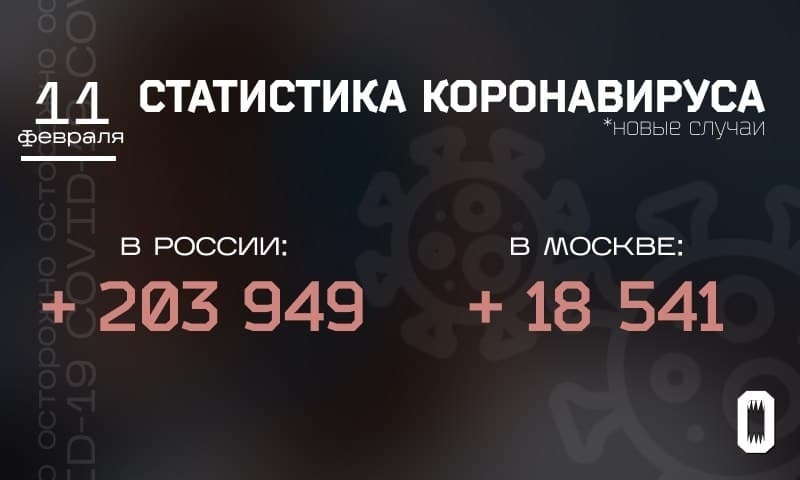 203 949 заболевших ковидом за последний день в России. Это рекорд с начала пандемии. В Москве — 18541 заболевший, в Питере — 22070.