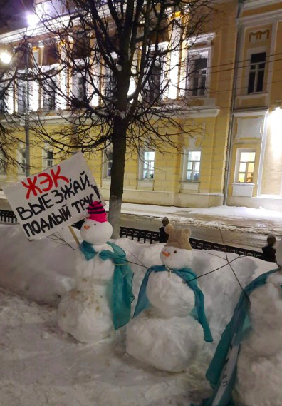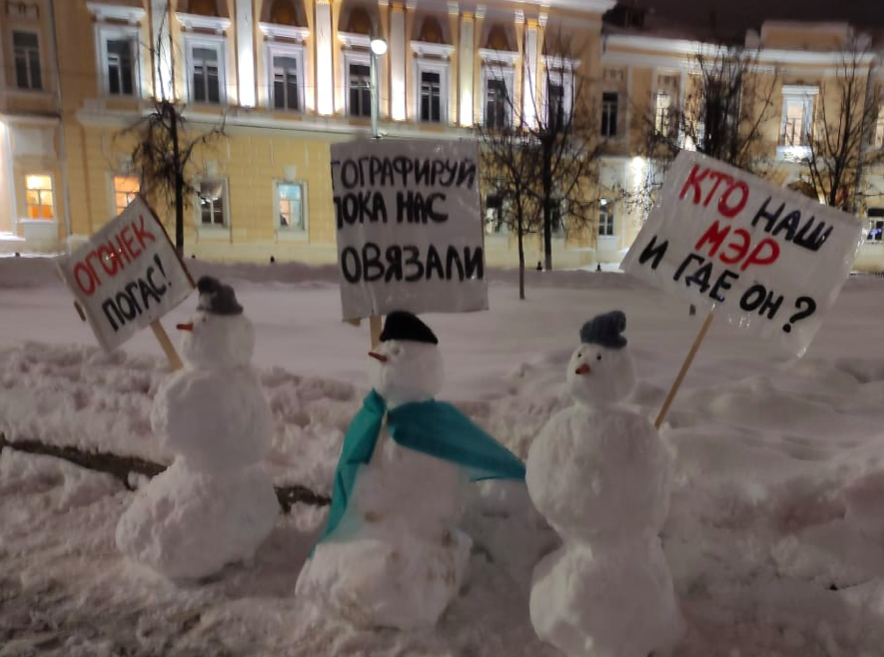 Не прошло и суток после выхода публикации, а в центре города снеговики устроили несанкционированный митинг.
