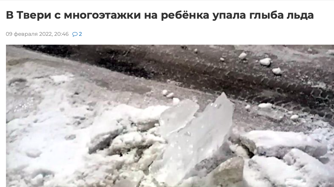 В понедельник, 7 февраля, опубликовала статью о заснеженной Твери со свисающими с крыш смертоносными сосульками.
