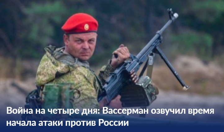Причём Вассерман считает, что конкретно Украина может напасть на наше государство. Приблизительное время начала атаки — конец июля либо август этого года. Вообщем, длительно война, как считает член парламента, не продлится — только четверо суток." Я считаю, что война Украины против России будет четырёхдневной, — сообщил депутат в беседе, которое он отдал "Собеседнику". - Даже не поэтому, что у Рф может уйти так большое количество времени., а поэтому, что высшее управление Россия решит последовать примеру чрезвычайно почти всех выдающихся атлетов и не лупить рекорд сходу на много, а оставить припас для установления новых рекордов".