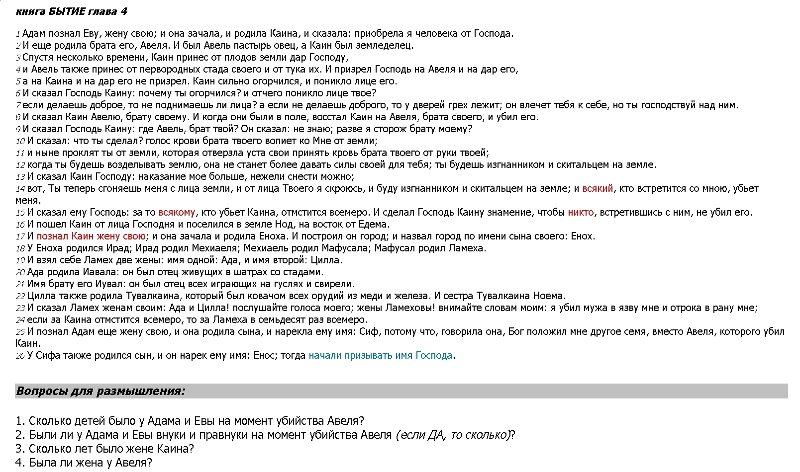 Если вам интересно узнать, кого так боялся увидеть Каин и было ли ему трудно найти себе жену (из своих родственников), напишите в комментариях методы, которые помогли бы сделать расчёт численности населения.